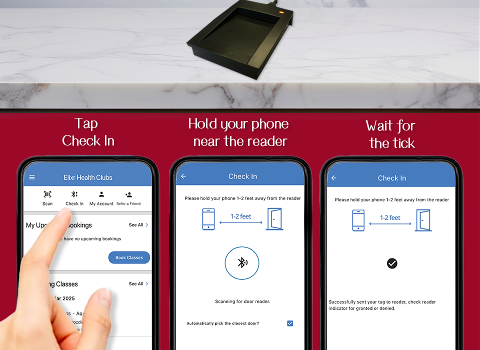 Don’t have your Elixr membership tag on you? You can check into the club using our member app by GymMaster*.